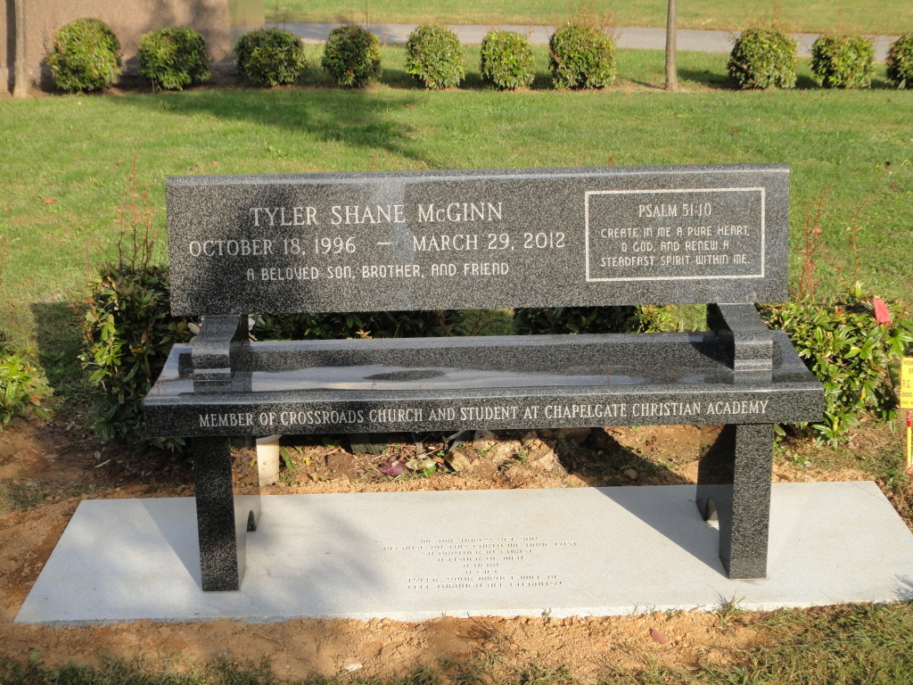 The other night, I drove to the cemetery, intending just to stay in my car and look at Tyler’s bench as I sometimes do. But the March night was already pitch black, and I couldn’t even make out the outline of his memorial. So I walked over and sat down, grateful that I couldn’t see the grime or bird droppings I knew must be there. I’d never been there after dark before. The wind whipped through my hair and I let the tears fall.