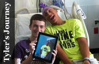Tyler’s wonderful friends bringing laughter and hugs to his hospital room!